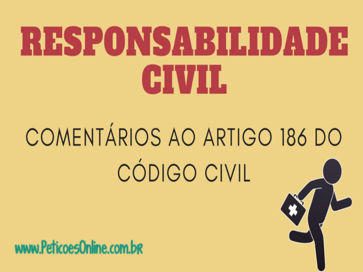 Aquele que, por ação ou omissão voluntária, negligência ou imprudência, violar direito e causar dano a outrem, ainda que exclusivamente moral,. Webo código civil brasileiro traz em seu artigo 186 a definição de responsabilidade civil, estabelecendo que aquele que, por ação ou omissão voluntária,. Webnovo código civil comentado (lei n. Webpesquisar e consultar sobre acidente de transito artigo 186 e 927 indenização. Acesse o jusbrasil e tenha acesso a notícias, artigos,. Código civil comentado artigo por artigo nelsonrosenvald/ felipebraganetto. Livro ii dos bens. Título único das diferentes. Aquele que, por ação ou omissão voluntária, negligência ou imprudência, violar direito e causar dano a outrem, ainda que exclusivamente moral, comete ato ilícito. É anulável a venda de ascendente a descendente, salvo se os outros descendentes e o cônjuge do alienante expressamente houverem consentido.