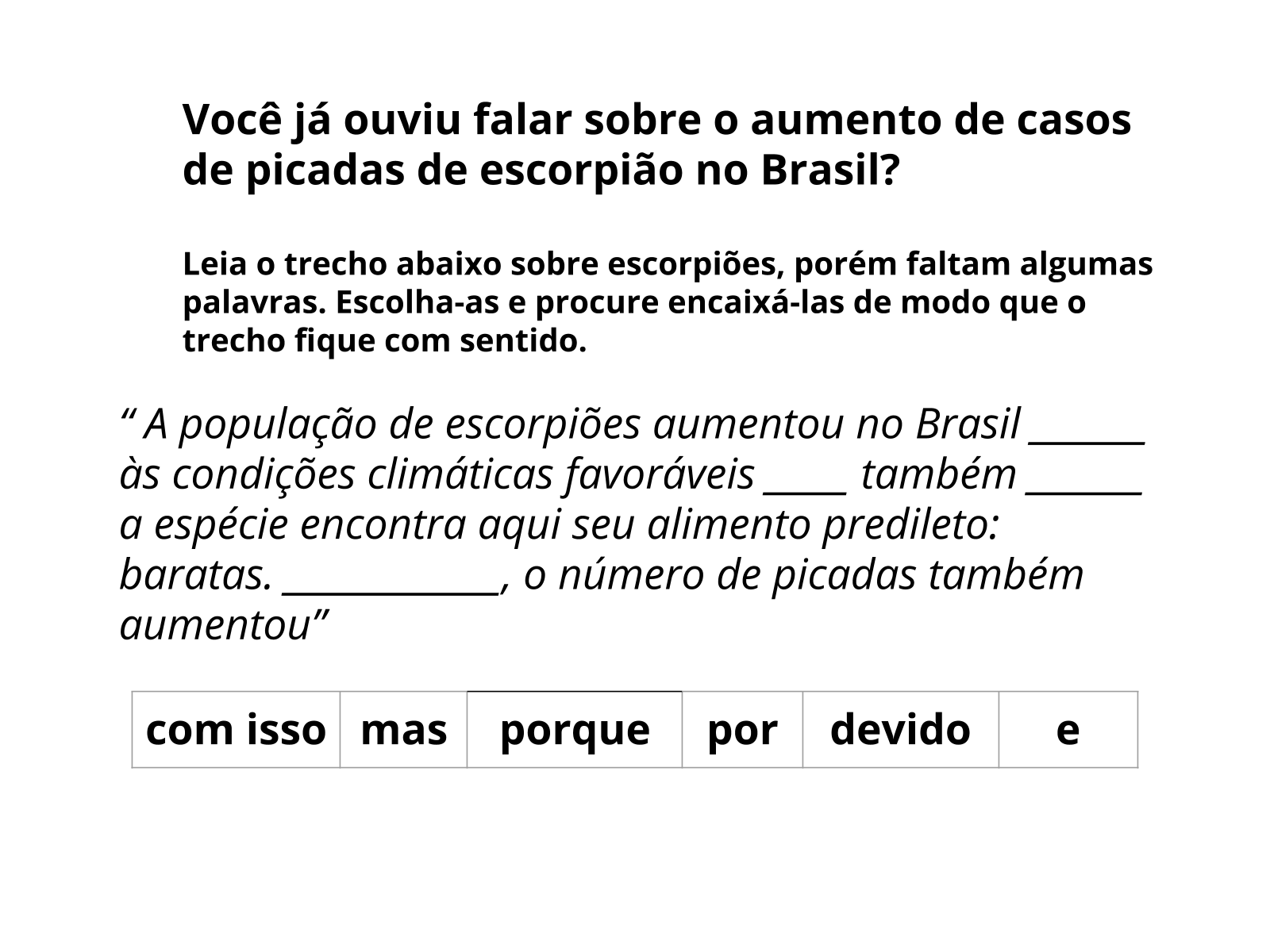 Webtemos uma atividade pronta para vocês utilizarem em suas aulas. Esta atividade aborda o uso de conjunções em um texto e a classificação de palavras como primitivas,. Faça exercícios sobre conjunções e veja a resolução comentada. Vânia maria do nascimento. Weborganize os alunos em duplas e solicite que localizem e destaquem no texto 7 conjunções, ou seja, palavras que são usadas para ligar duas ideias, estabelecendo. Webatividade de português com 10 exercícios sobre conjunções e o uso cessão, sessão e seção. Todos voltados para alunos do 5º ano. Webvisa ensinar a utilizar as conjunções tanto na construção quanto na leitura de textos em português, estudando a função e os tipos das conjunções, classificadas em. Webde 2018 a 2022, produção de ouro em garimpos subiu. No entanto, importação de mercúrio, metal necessário para a atividade, diminuiu.