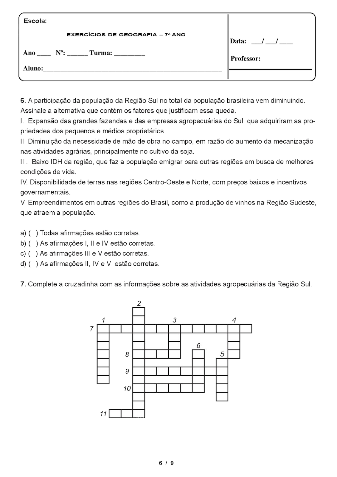 ATIVIDADES DE GEOGRAFIA 7° ANO EXERCÍCIOS PROVAS AVALIAÇÕES IX - PORTAL