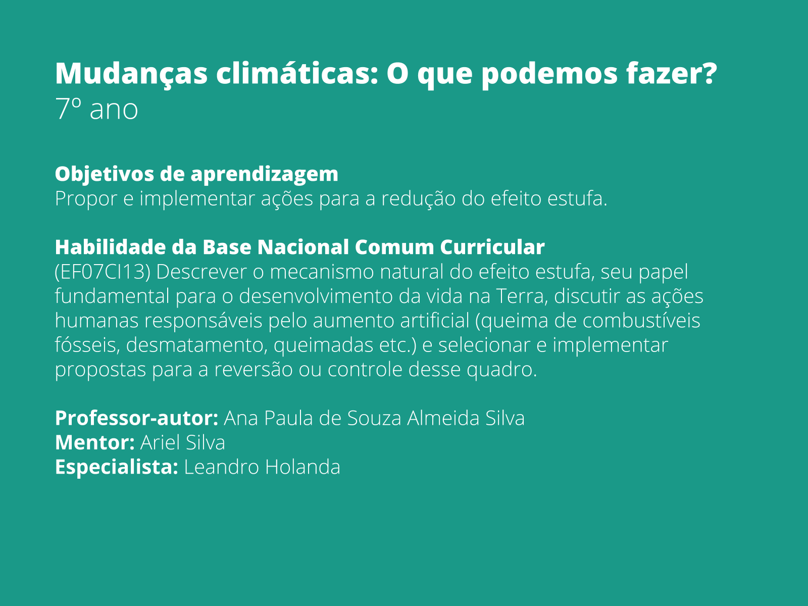 Plano de aula - 7o ano - Mudanças climáticas: O que podemos fazer?
